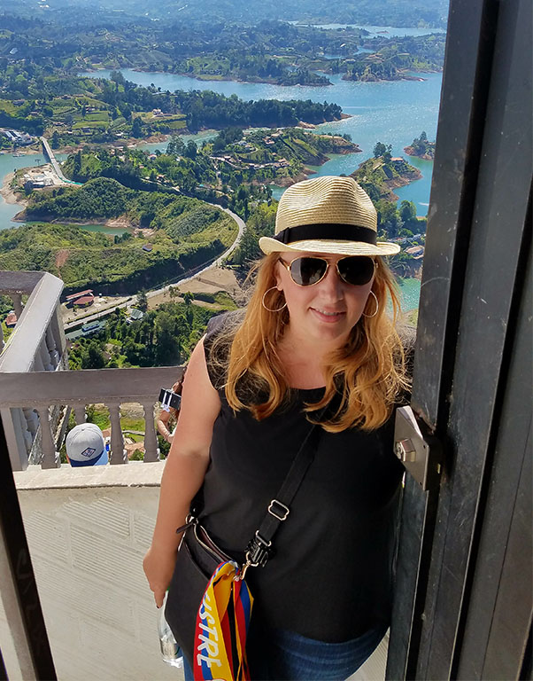 Day 3 – Climbing La Piedra. We took another day trip by taxi/van. Our first stop was La Piedra. The name means ‘the rock,’ which is apt as it’s a massive rock formation. To get to the top, you climb 740 stairs. At the top, you can enjoy the amazing views with a snack and cold drink. We then continued to the village of Guatape. The best word to describe Guatape is colorful as almost every building is painted in bright colors and intricate murals.