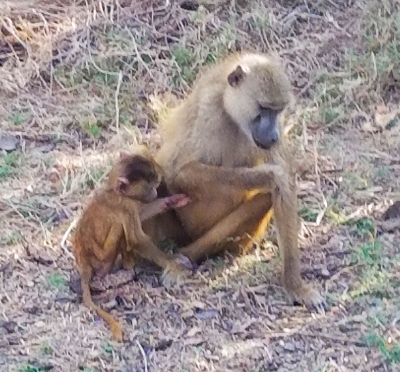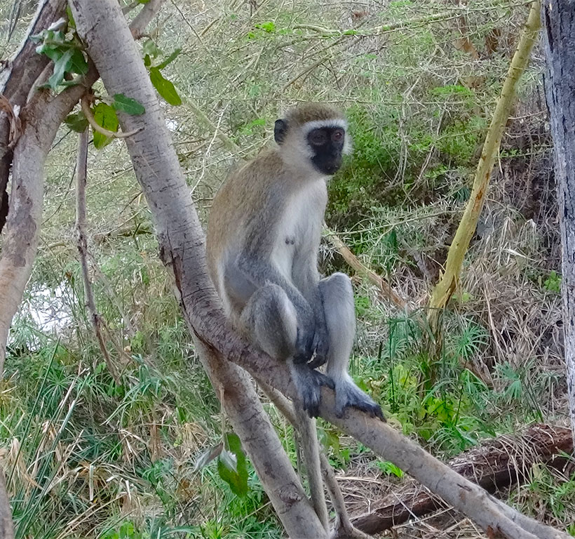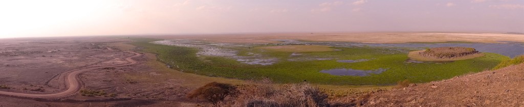 Amboseli – We awoke in Tsavo West and headed out early to ensure a lunchtime arrival at Amboseli. A lunchtime arrival means an afternoon drive. We stayed at the Amboseli Serena Safari Lodge, a sister property to our Tsavo West digs. The lodge and accompanying grounds felt almost tropical, complete with small wild monkeys. This park and lodge also have Mt. Kilimanjaro as a backdrop. Wow! The terrain at Amboseli is flat but diverse. Some of it was desert dry and other parts were marshes. A lookout point, on top of the one hill in the park, allowed us to see the demarcation between the wet and dry areas. (See below.) During the rainy season, Lake Amboseli emerges from the marshy areas and spreads into the park. On our afternoon drive, we had our first sightings of baboons, wildebeest, ostriches, jackals, and vultures. We also saw hippos and elephants swimming in the marshes and animal carcasses that got picked clean in just a few hours. There are lots of scavengers in Amboseli! During our two safari drives on the next day, we continued to explore this unique park.