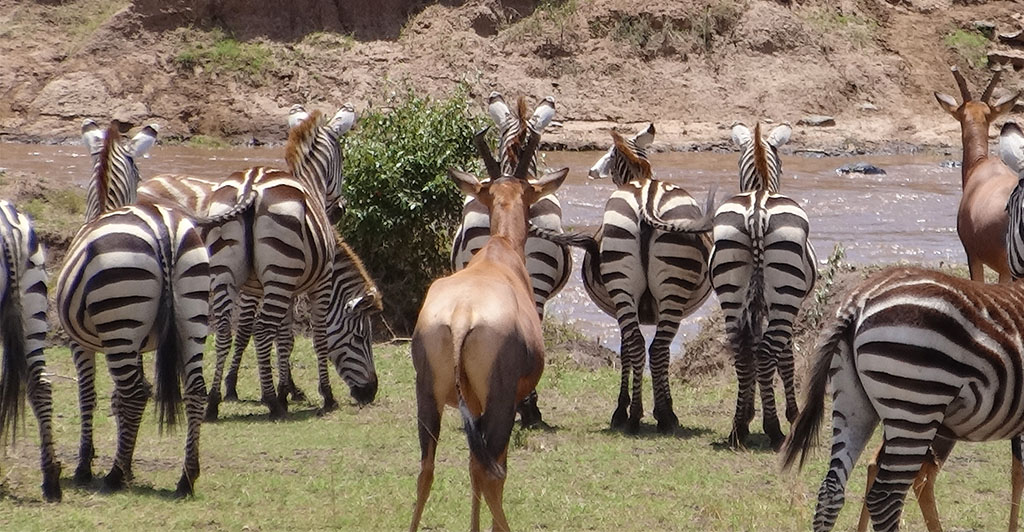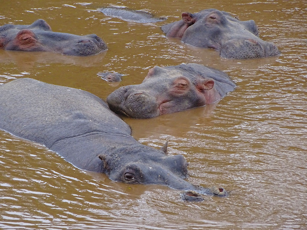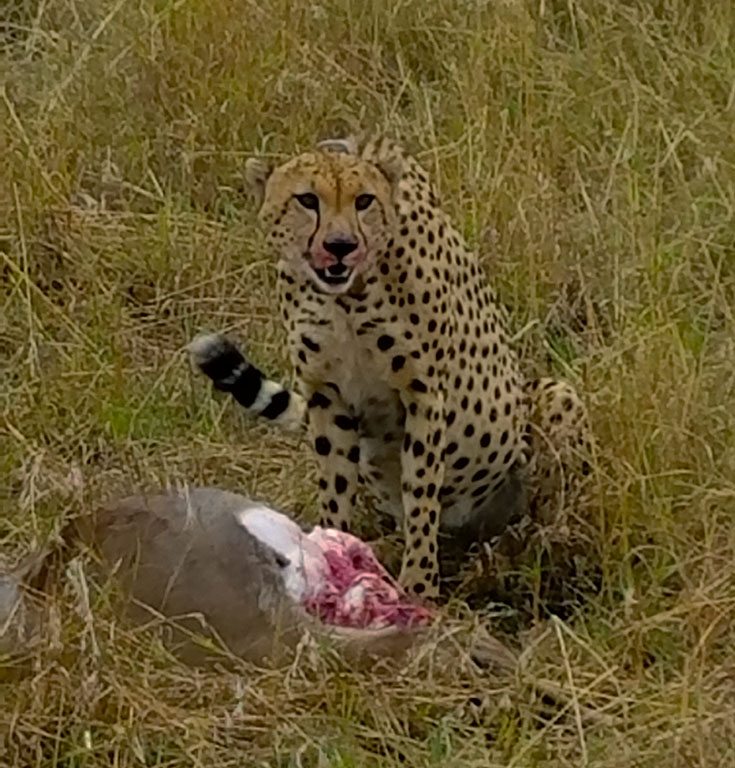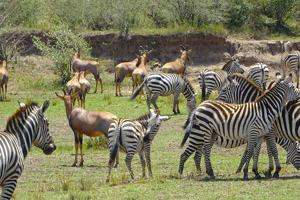 That afternoon we saw two large lion prides, zebras, elephants, baboons, rhinos, hyenas, giraffes, wildebeest, and many deer varieties. Over the next several days, we watched a cheetah devouring its kill, a lioness teaching her cubs to hunt, hippos rolling around a river beach, the wildebeest migrating, and so much more. The animals were just everywhere! (All except that dang leopard.) We also saw lots of cute baby animals. It was really interesting to see how the animals interacted. A predator could certainly scatter a herd, but the grass eaters were all lumped together. Deer, giraffes, zebras, wildebeest, water buffalo… and they were all grazing together. Even the wildebeest migration across the Mara River included a few zebras and deer!