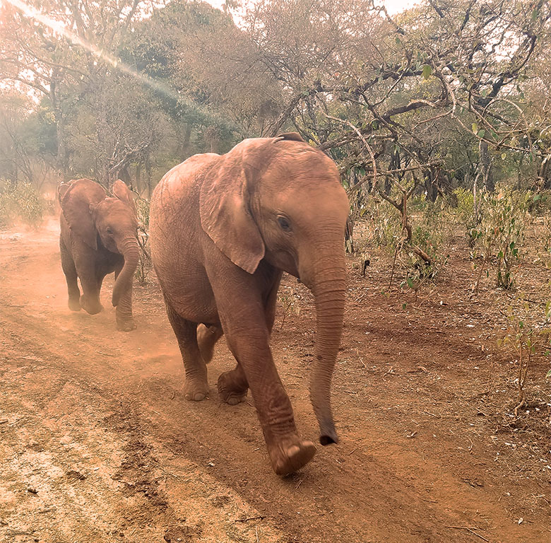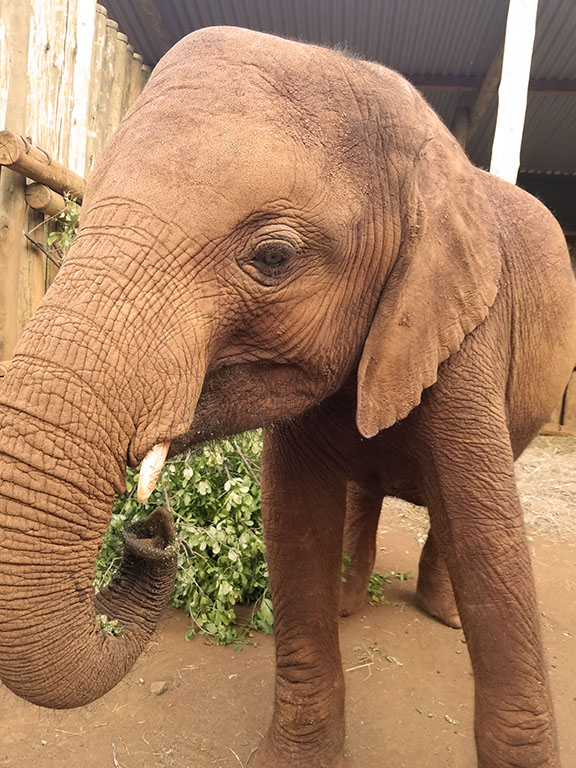 After spending time with the giraffes, we braved the Nairobi traffic to go to the famed elephant orphanage run by the Sheldrick Trust. Amongst their many efforts, they raise orphaned elephants and return them to the wild. Baby elephants live on milk for years, so the loss of a mother means the loss of the calf. These babies are brought to the orphanage where they receive lots of milk bottles and the company of other orphaned baby elephants. Daily forays into the surrounding park teach them the skills needed to later reintegrate back into the wild. There are two daily viewings, and you should make an appointment. The first viewing is mid-day and only costs a few dollars. The second viewing is in the early evening when the babies are brought back into the stockades. This viewing limits the number of attendees and gives better access, but you must foster at least one elephant for a year ($50). My friend and I fostered a few elephants and thoroughly enjoyed being able to wander around the orphanage grounds during the second viewing. At that time, the orphanage was also home to a baby giraffe, a blind rhino, and a small gang of ‘pumbas.’