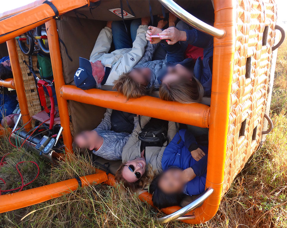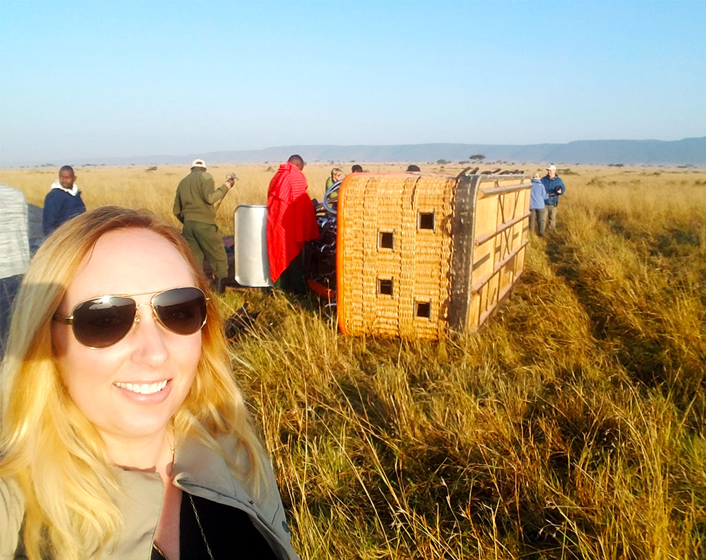 On our third morning, we took a hot air balloon ride. It was a very early morning, and we watched a gorgeous sunrise over the Maasai Mara. Fun fact – did you know that hot air balloon baskets may tip over upon landing?! I learned this that day. I got to crawl out of the basket on my hands and knees! They then made us a champagne breakfast. We were very spoiled! Later that afternoon we visited a Maasai village. A tour, dance exhibition, and shopping were all on the schedule. It’s worth noting that the money from our purchases of their handmade items directly supports the village and the local school.