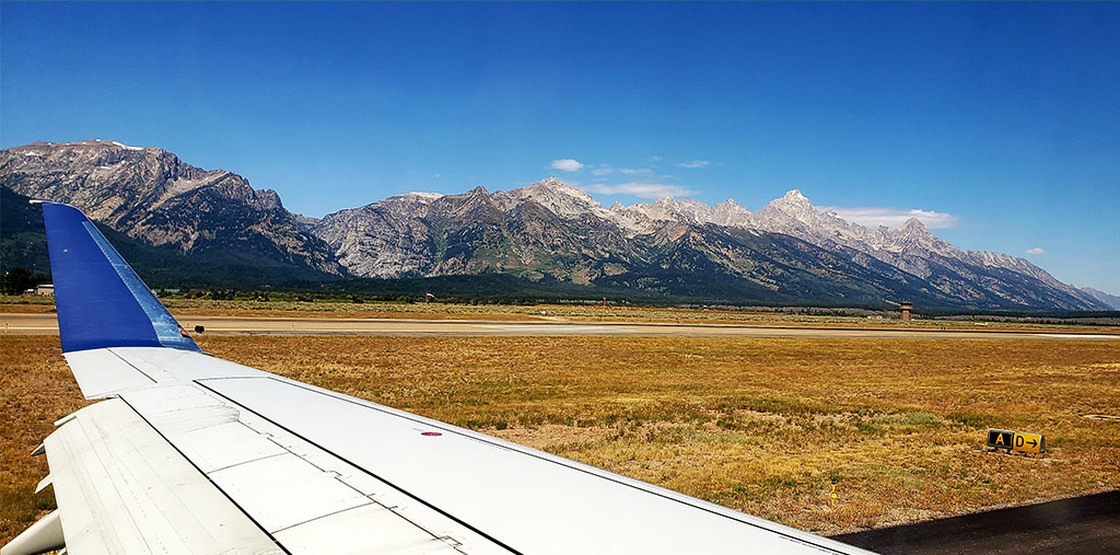 Jackson Hole – The flight to Jackson Hole was easy, which meant we arrived by mid-day. The airport, and Jackson Hole itself, are in a flat valley surrounded by dramatic mountains. The airport welcomes you with a massive display of antlers and signs announcing bear spray rentals. I found this amusing at the time but came to appreciate the bear spray later in the trip. After getting our rental car, we were off to Jackson Hole.